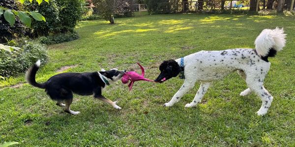 The Stay & Train program is a personalized, immersive training experience designed to meet your dog’s unique behavioral needs. Over 2–4 weeks, your dog will stay in a comfortable, home-like environment and receive daily one-on-one training sessions focused on obedience, socialization, and behavior goals—using positive reinforcement methods. Each day includes structured training, playtime, rest, and supervised social interaction, all tailored to your dog’s personality and progress. You’ll receive regular updates with photos and videos throughout their stay, and the program includes an at-home follow-up session and detailed training report to ensure lasting success.
